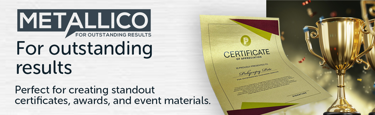 Recognise achievement with Metallico – a shimmering A4 metallic-effect paper and card range, perfect for creating standout certificates, awards, and event materials.